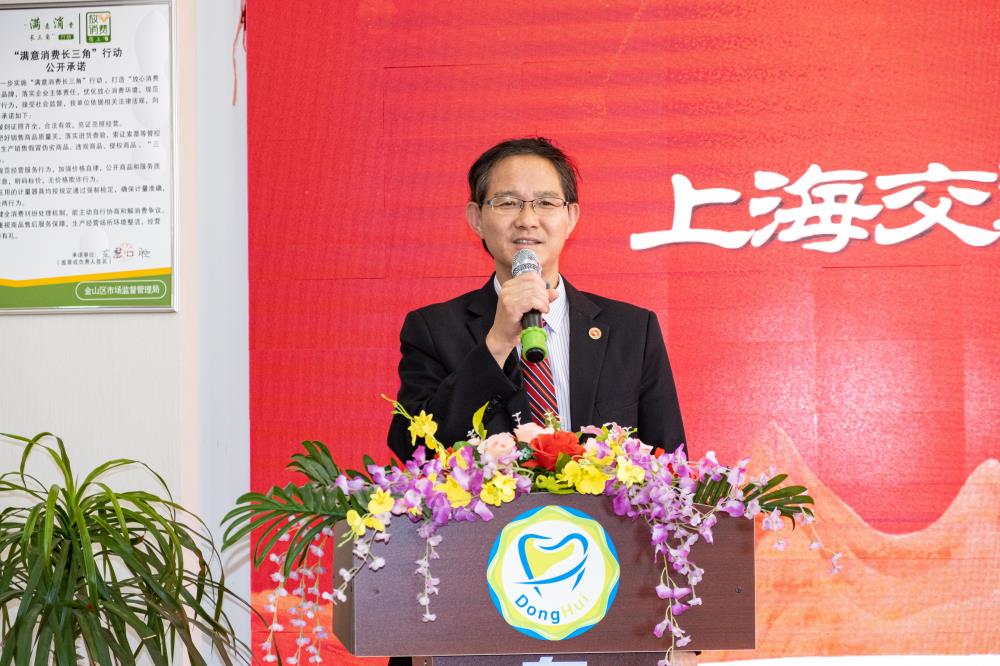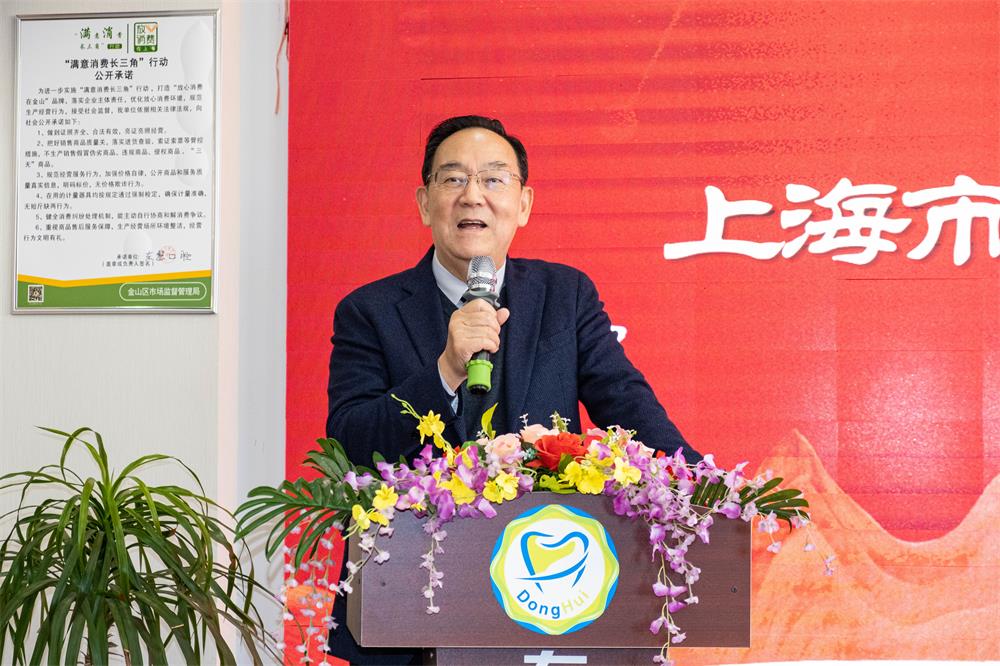 Yan Dongfang, President of Shanghai Association of Social Medical Institutions, Zheng Jiawei, Deputy Secretary of the Party Committee of Shanghai Jiao Tong University School of Stomatology, and Tan Junfeng, Director of Jinshan District Party Service Center, delivered speeches respectively, congratulating Donghui Stomatological Hospital on its achievements and outstanding contributions in the fields of medical technology, scientific and technological innovation, and public welfare services.
