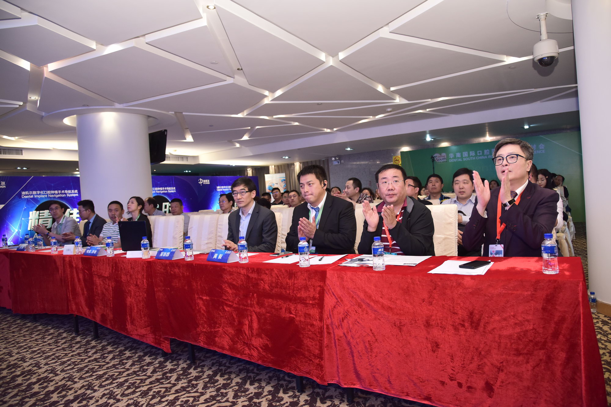 在啟動(dòng)儀式上,中華口腔醫(yī)學(xué)會(huì)副會(huì)長(zhǎng)、武漢大學(xué)口腔醫(yī)學(xué)院院長(zhǎng)、中華口腔醫(yī)學(xué)會(huì)牙體牙髓專(zhuān)委會(huì)主任委員、中華口腔醫(yī)學(xué)會(huì)教育專(zhuān)委會(huì)主任委員、博士生導(dǎo)師邊專(zhuān)教授,武漢大學(xué)口腔醫(yī)學(xué)院種植科主任施斌,上海交通大學(xué)附屬第九人民醫(yī)院口腔種植科主任醫(yī)師吳軼群、四川大學(xué)華西口腔醫(yī)院種植科主任滿毅和迪凱爾醫(yī)療科技有限公司創(chuàng)始人、總經(jīng)理陳云共同在大屏幕上按下“大手印”,象征科技創(chuàng)新引領(lǐng)未來(lái)的能量之光瞬間迸發(fā)照亮屏幕,迪凱爾數(shù)字化口腔種植手術(shù)導(dǎo)航系統(tǒng)正式發(fā)布。